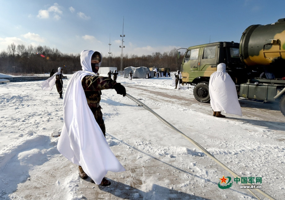 Recently, a missile brigade conducted a one-month winter live fire drill in snowfield. Over 1,000 soldiers and 100 vehicles participated in the drill, with all the training subjects completed successfully. (Photo source: www.81.cn)