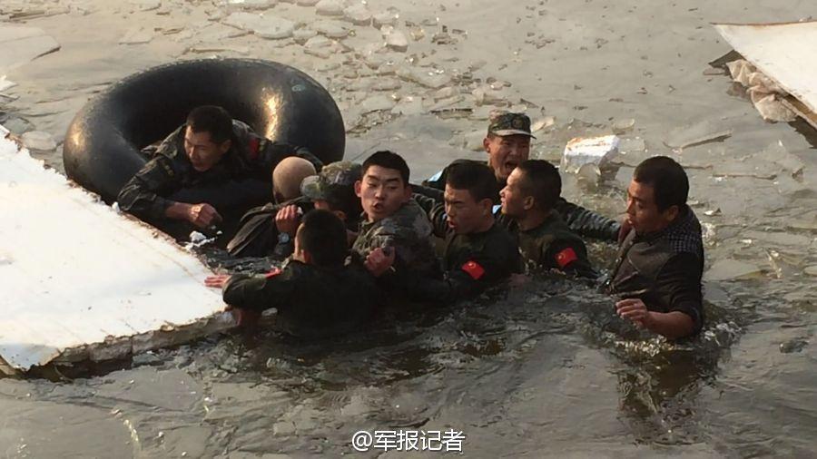 PLA soldiers rescue two men from icy lake (4)