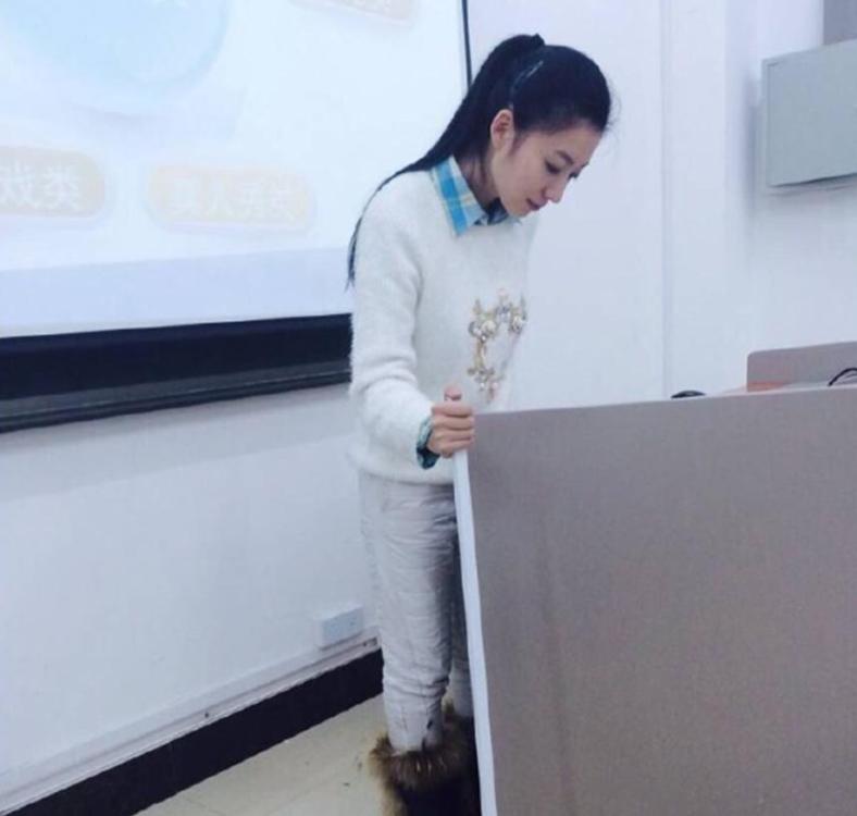 Huang Xing, university teacher, got acute lumbar sprain after a traffic accident. Huang stands with a crutch and helps her students review what they've learned before a final examination.(Photo/Xinhua)