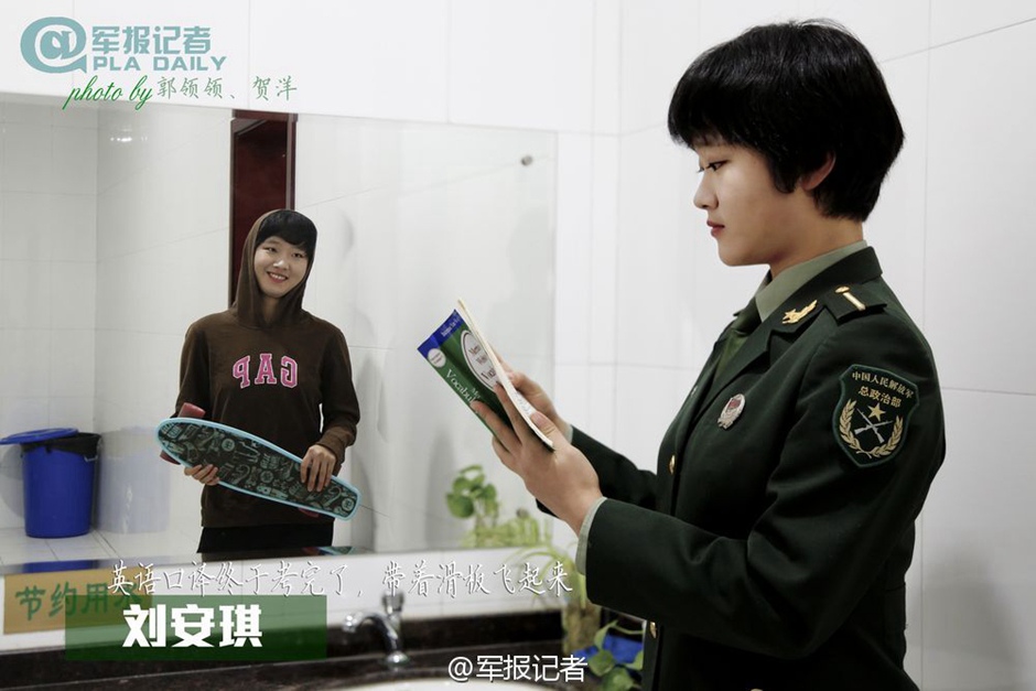 Students at PLA Nanjing Institute of Politics post their time travel photos online as souvenirs of the past year, and wishing a happy new year in 2015. (Photo/Weibo)