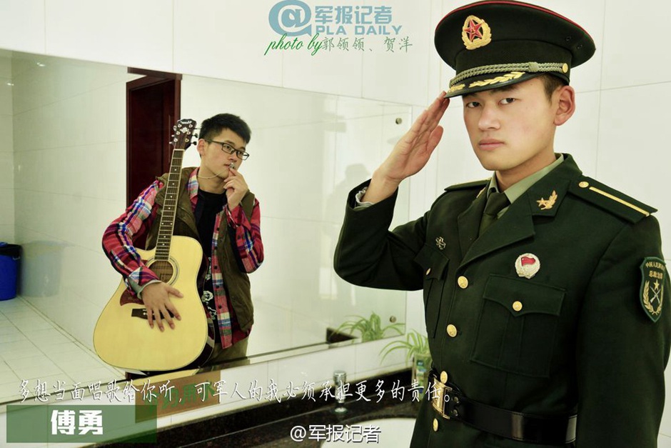 Students at PLA Nanjing Institute of Politics post their time travel photos online as souvenirs of the past year, and wishing a happy new year in 2015. (Photo/Weibo)