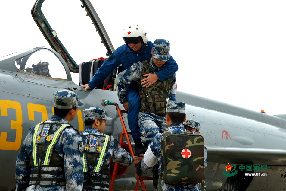 An air force station of Guangzhou military region holds an emergency drill on Dec. 24, 2014. The scenario was that the station was bombed in an air raid and many planes were on fire. Soldiers responded rapidly to defend the airport and resume the normal operation of the station. (Photo source: www.81.cn)