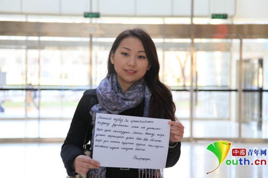 Bao Le'er, a Mongolian girl, has been studying in China for six years. She commented that Xi is a great leader with an attractive smile who has won the trust of the people. She also expressed a hope for better Sino-Mongolian ties.(Photo/Youth.cn)