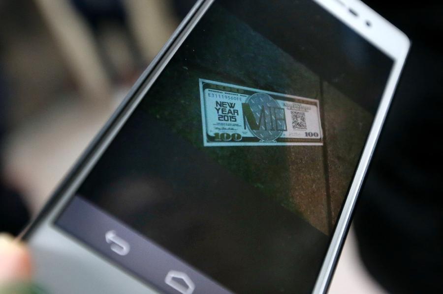 | Photo taken on Jan. 1, 2015 shows a picture of a coupon in a cellphone that looks like "dollar bill" which was thrown from a building's third-floor window near the scene of an accident that caused casualties among people who took part in new year celebrations in east China's Shanghai. New Year celebrations in Shanghai's bund area went astray Wednesday night as a stampede resulted in 35 people dead and 42 injured. A witness said that some coupons were thrown from a building's third-floor window near the Bund and people standing along the river bank started to scramble for these coupons. The city has set up a working team for rescue operations and to deal with the aftermath. (Xinhua/Ding Ting) |