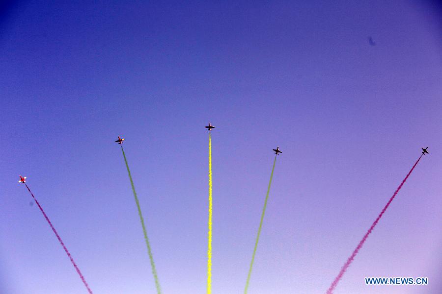 Myanmar military fighters participate in a ceremony to mark the 67th anniversary of Myanmar's Independence day in Nay Pyi Taw, Myanmar, Jan. 4, 2015. Myanmar resumed military parade and mass procession Sunday to celebrate the country's Independence Day for the first time in over five decades since the end of 1950s. (Xinhua/U Aung)