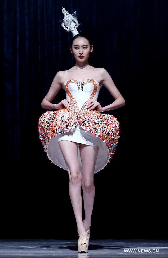 A model presents a creation by Malaysian designer Carven Ong at a wedding dress show during the China-ASEAN fashion week in Nanning, capital of southwest China's Guangxi Zhuang Autonomous Region, Jan. 3, 2015. (Xinhua/Chen Jianli)