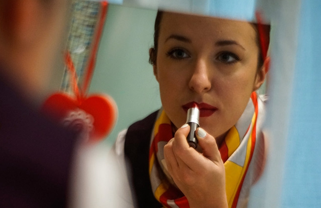 Katya Ganich, 25, has been working for Hainan Airlines for three years. Chinese airline companies are increasingly recruiting foreign flight attendants as the industry experiences rapid expansion. (Photo/Shen Shi)