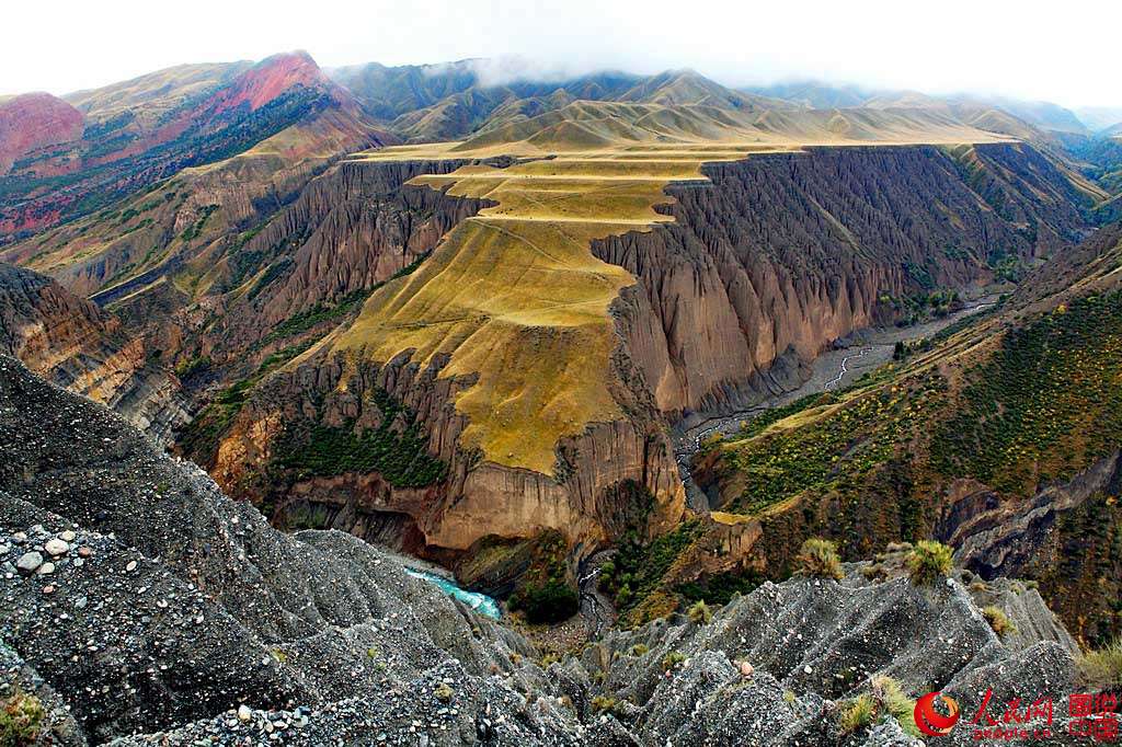 Hongshan Grand Canyon is located around Anji Haihe River, northern slope of Tianshan Mountain, northwest China's Xinjiang. (Photo/People.cn)