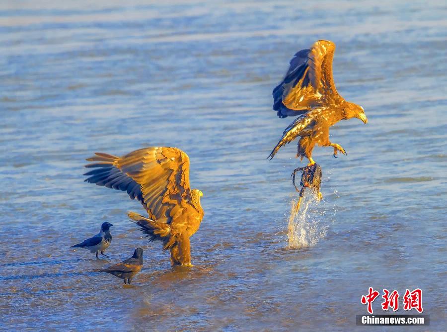 White-tailed eagles catch fishes in NW China (3)