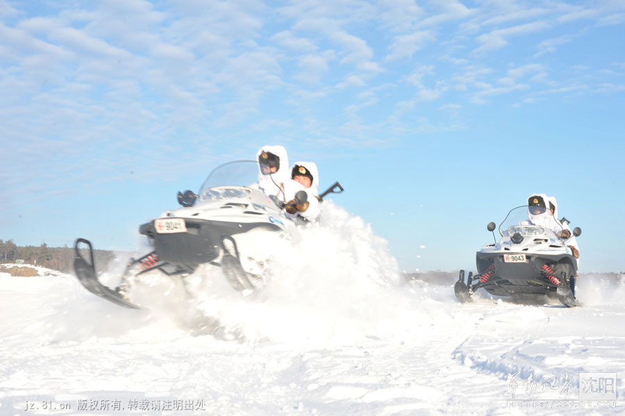 A new type of motor sled that has recently been used as a patrol vehicle by frontier guards of the Shenyang Military Command garrisoned in Mohe County, northeast China's Heilongjiang Province, close to the Russian border. [jz.81.cn]