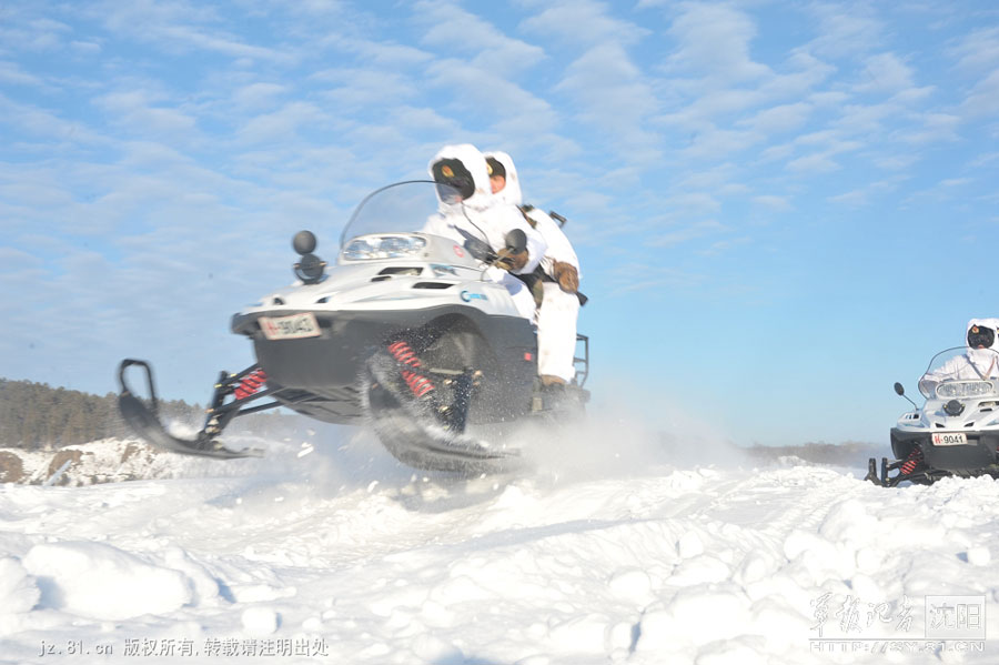 | A new type of motor sled that has recently been used as a patrol vehicle by frontier guards of the Shenyang Military Command garrisoned in Mohe County, northeast China's Heilongjiang Province, close to the Russian border. [jz.81.cn] |