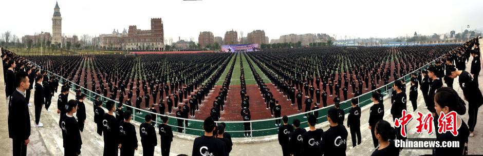| 10,021 students from Sichuan Southwest College of Civil Aviation practice Wing Chun in Chengdu, southwest China's Sichuan province, Jan. 8, 2015. (CNS/Liu Zhongjun) |