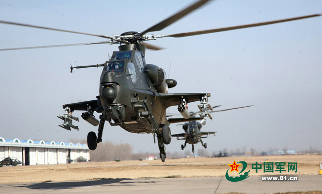 The photos show China's WZ-9 and WZ-1O attack helicopters. (Photo/81.cn)