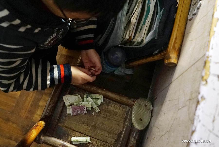Mo Shuangyi sorts out money donations from fellow school mates at his home in Tonggu County of Yichun, east China's Jiangxi Province, Jan. 9, 2015. After his father was diagnosed with leukemia in October 2014, Shuangyi, a 10-year-old schoolboy in Tonggu County, decided to collect recyclable wastes and sell them for money in order to save his father, who thought of giving up treatment because of high medical costs. His filial deeds caught extensive attention when pictures of him collecting wastes spread on the Internet. Shuangyi's family received public donations and a series of subsidies from local authorities soon after. The boy has now returned to school to focus on his education. (Xinhua/Chen Zixia)