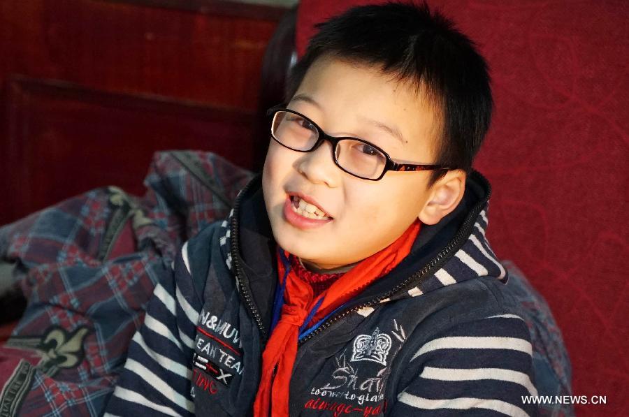 Mo Shuangyi poses for a photo in Tonggu County of Yichun, east China's Jiangxi Province, Jan. 9, 2015. After his father was diagnosed with leukemia in October 2014, Shuangyi, a 10-year-old schoolboy in Tonggu County, decided to collect recyclable wastes and sell them for money in order to save his father, who thought of giving up treatment because of high medical costs. His filial deeds caught extensive attention when pictures of him collecting wastes spread on the Internet. Shuangyi's family received public donations and a series of subsidies from local authorities soon after. The boy has now returned to school to focus on his education. (Xinhua/Chen Zixia)