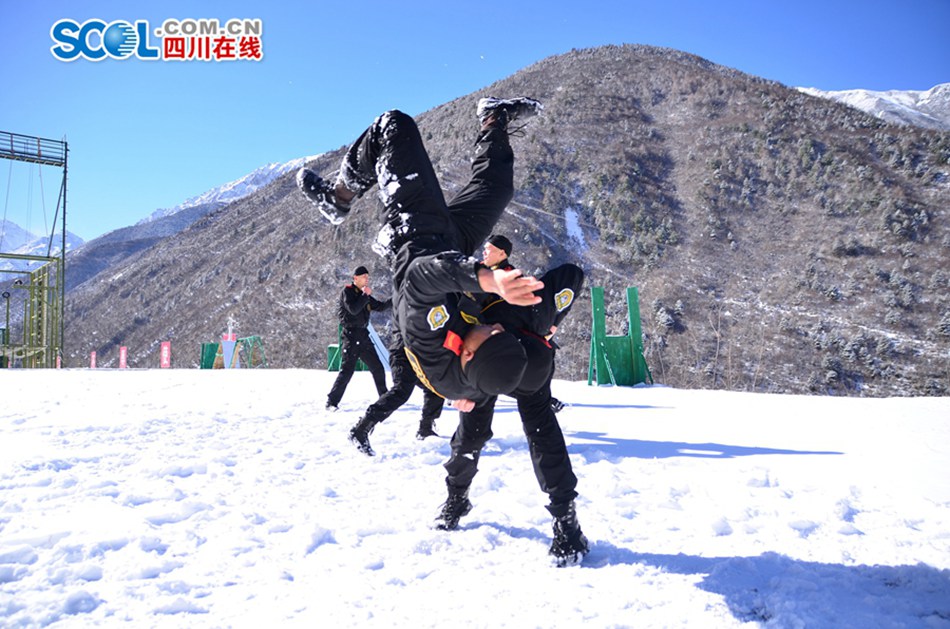 A detachment of the armed police corps in Kangding, southwest China's Sichuan province, carries out training in snow. (Scol.com.cn/Yi Aihua, Yang Hua and Chen Jianbing)