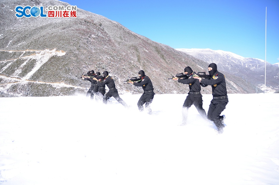 A detachment of the armed police corps in Kangding, southwest China's Sichuan province, carries out training in snow. (Scol.com.cn/Yi Aihua, Yang Hua and Chen Jianbing)