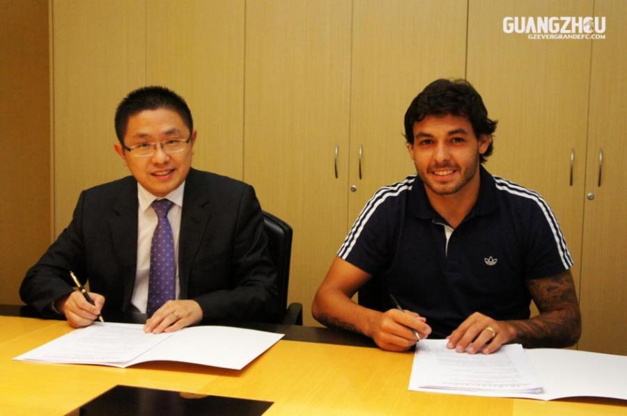 | Guangzhou Evergrande Taobao Football Club announces that it has signed the Brazilian football player Ricardo Goulart Pereira for four years with a transfer fee of ?15 million (17.76 million), Jan 13, 2015. Goulart is a 23-year-old attacking midfielder and striker with a height of 182 centimeters and a weight of 80 kilograms. [Photo: Guangzhou Evergrande] |