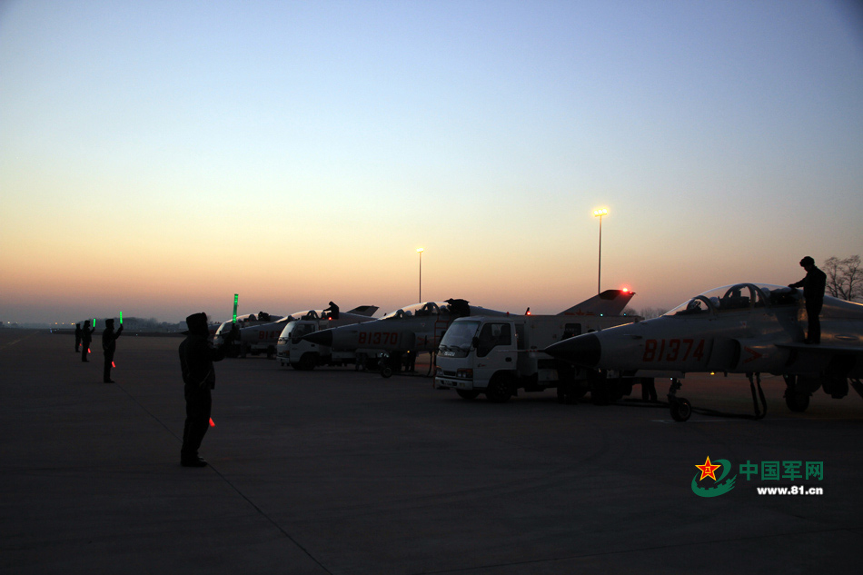 The air force of China’s North Sea Fleet conducts actual combat training on Jan. 9, 2015. As the first subject, the night flight training was a complete success. (Photo source: www.81.cn)