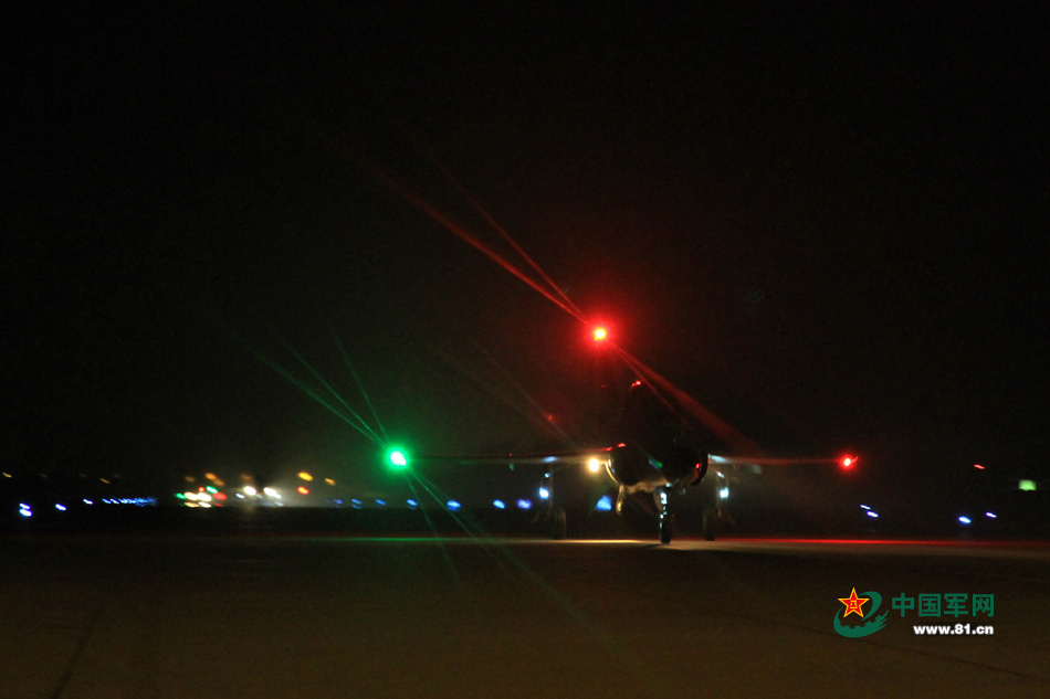 The air force of China’s North Sea Fleet conducts actual combat training on Jan. 9, 2015. As the first subject, the night flight training was a complete success. (Photo source: www.81.cn)