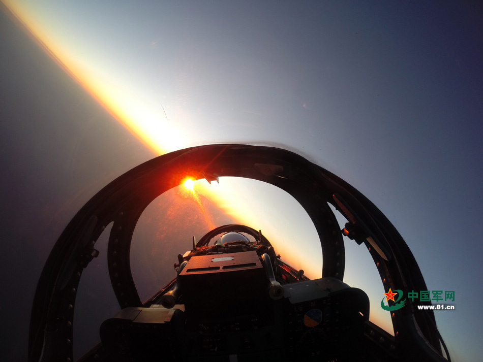 | The air force of China’s North Sea Fleet conducts actual combat training on Jan. 9, 2015. As the first subject, the night flight training was a complete success. (Photo source: www.81.cn) |