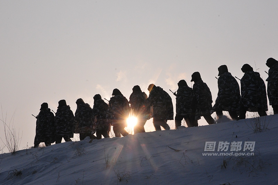 Soldiers march in snow.(Mod.gov.cn/Yang Dawei)