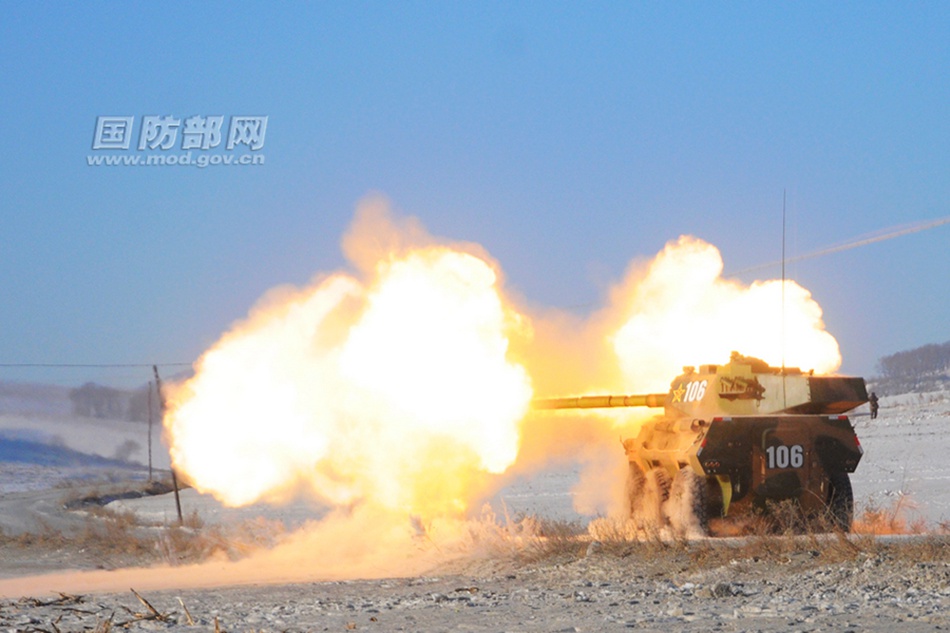 A new-type assault gun fires at "enemy".(Mod.gov.cn/Yang Dawei)
