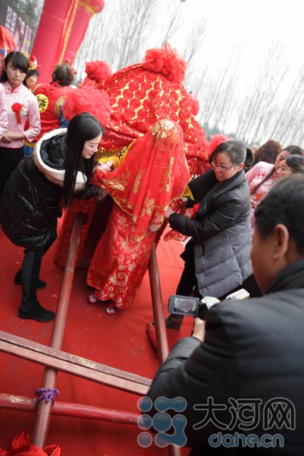 A couple holds a traditional wedding ceremony wearing Hanfu (Han costume) in Heluo Town, Gongyi, central China's Henan Province, Jan. 14, 2015. The wedding ceremony was conducted in accordance with traditional wedding customs of the Zhou Dynasty, and all the wedding attendees wore Hanfu clothes. (dahe.cn/Fan Zhao)