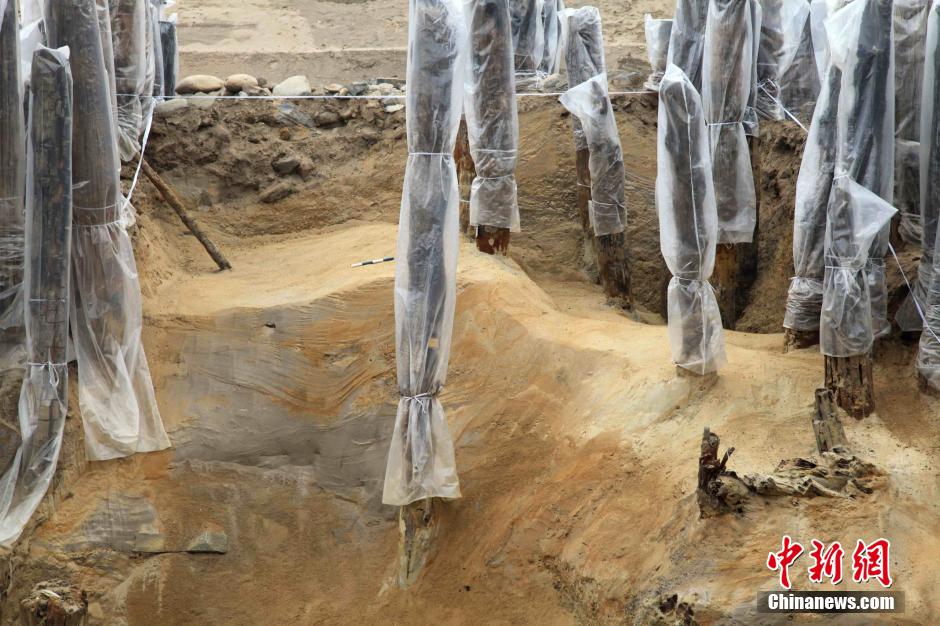 According to news released by Cultural Relics Bureau of Shaanxi Province on Jan. 15, archeologists have found remains of five ancient large bridges on the north side of the site of Chang’an City of the Han Dynasty (202BC-220AD). It is the first time that so many ancient large bridges have been found at one site. (Chinanews/Zhang Yuan)