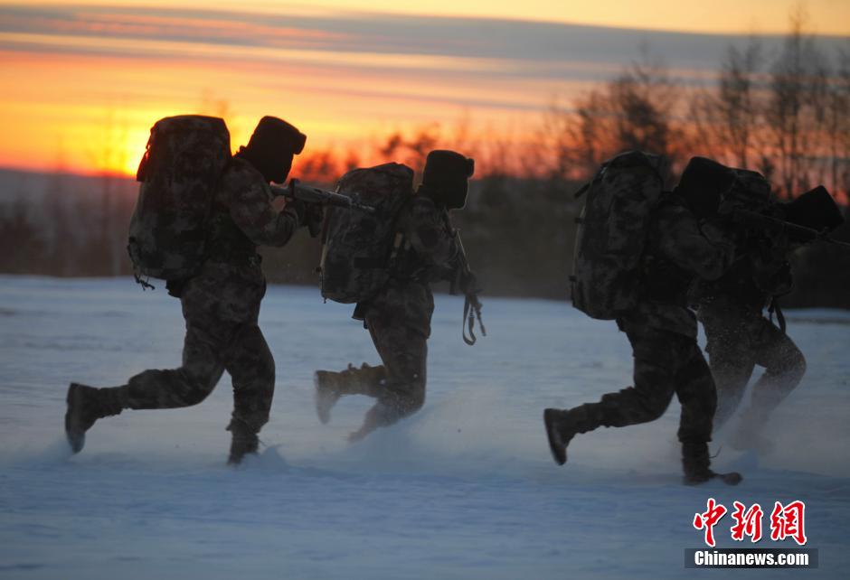Braving the extreme cold, the frontier soldiers conduct rapid march training in Heihe, northeast China's Heilongjiang province to improve the combat effectiveness of the troops under cold weather conditions. (Photo/CNS)