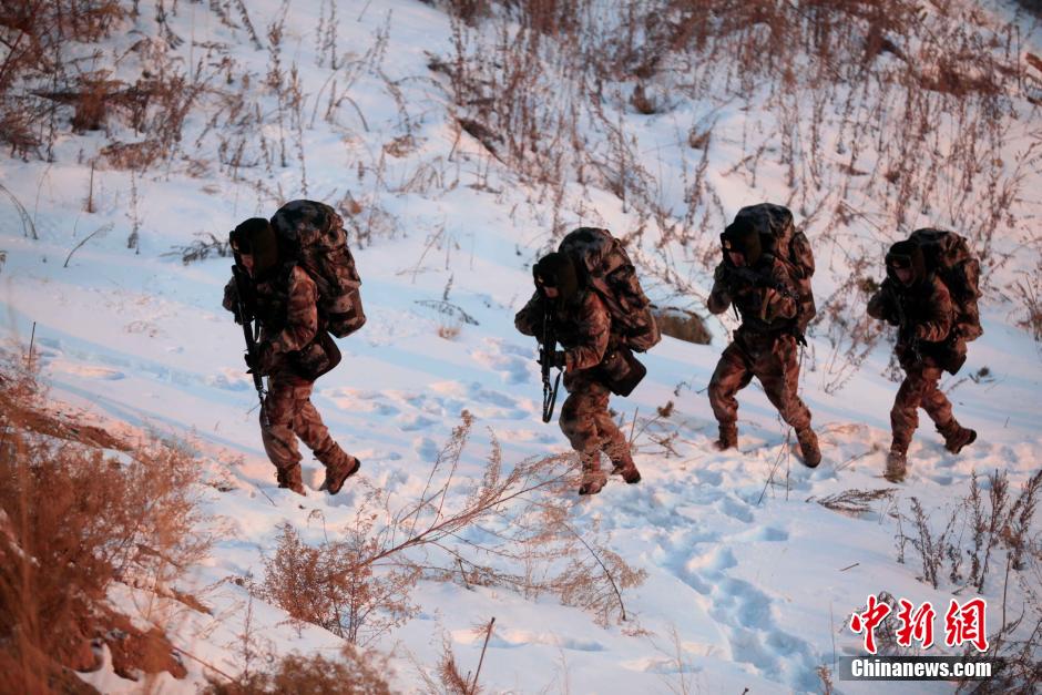 Braving the extreme cold, the frontier soldiers conduct rapid march training in Heihe, northeast China's Heilongjiang province to improve the combat effectiveness of the troops under cold weather conditions. (Photo/CNS)