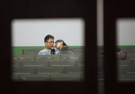 4:22 a.m., Dec.15, 2014 - A couple in the study room. (Photo/China Youth Daily)