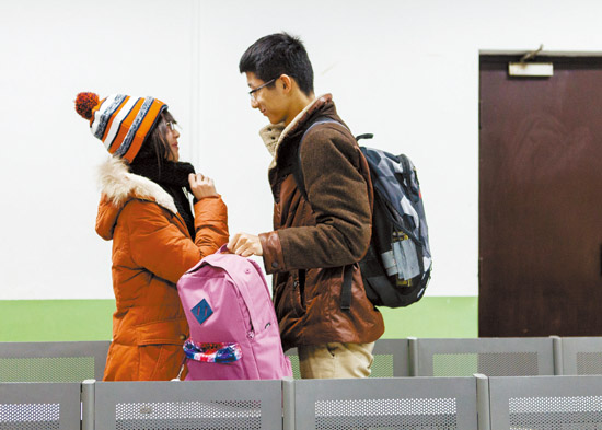 3:40 a.m., Dec. 8, 2014 - Zhu Pengfei and his girlfriend are ready to leave the study room. (Photo/China Youth Daily)