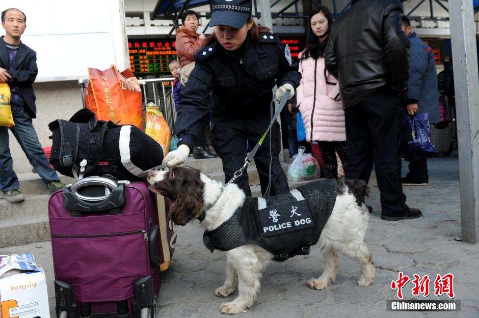On Jan. 20, 2015, Xi’an railway police conduct 20-day training for police dogs to ensure security check during the traditional Spring Festival travel peak. (Chinanews.com/ Zhang Yuan)