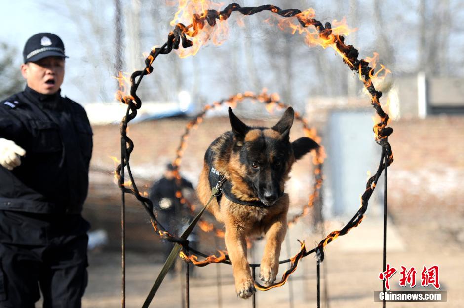 On Jan. 20, 2015, Xi’an railway police conduct 20-day training for police dogs to ensure security check during the traditional Spring Festival travel peak. (Chinanews.com/ Zhang Yuan)