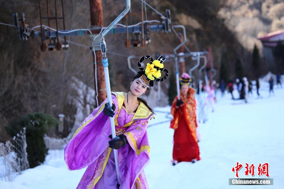 Cosplay! Chinese and foreign beauties ski in ancient costumes (4)
