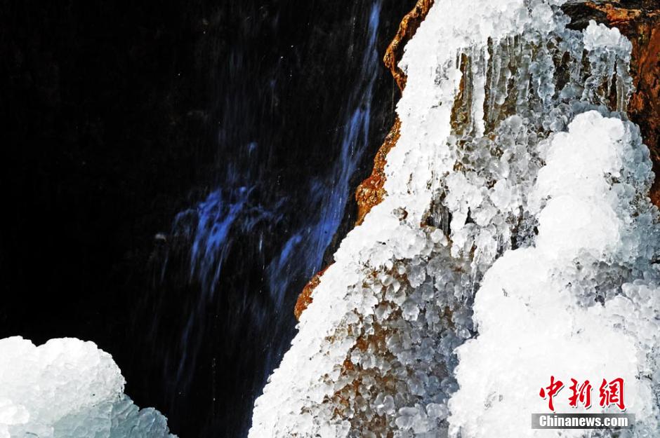 Ice waterfalls appear at Guanhegou National Forestry Park in northwest China's Gansu province on Jan.21, 2015. (CNS/Yang Yanmin)