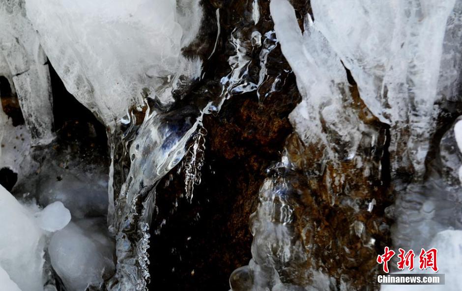 Ice waterfalls appear at Guanhegou National Forestry Park in northwest China's Gansu province on Jan.21, 2015. (CNS/Yang Yanmin)