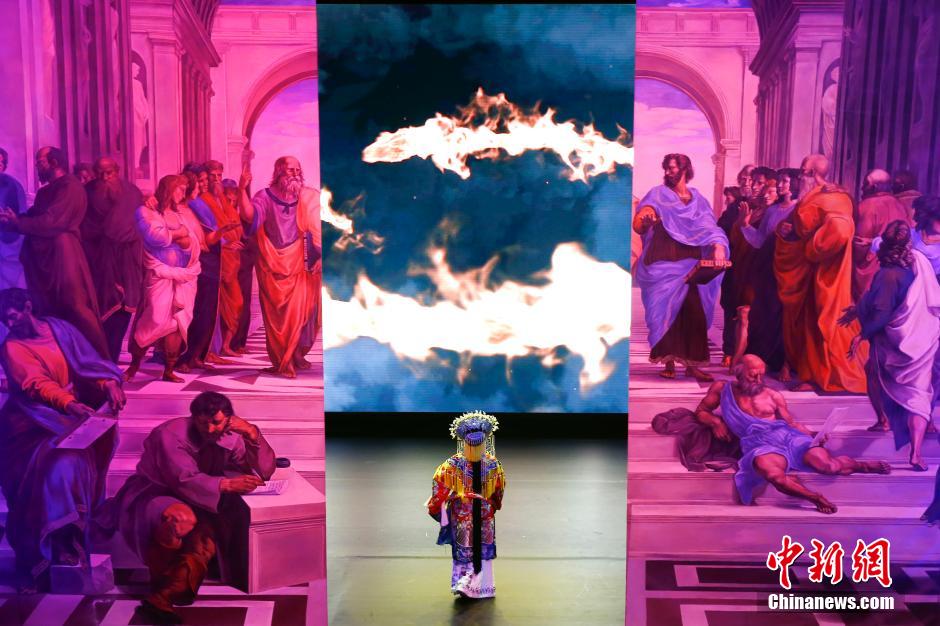 A stylish Peking Opera show is put on the stage in Beijing, Jan. 22, 2015. The innovative combination of Peking Opera and Western Opera brought audiences quite a feast. (Chinanews/Sheng Jiapeng)