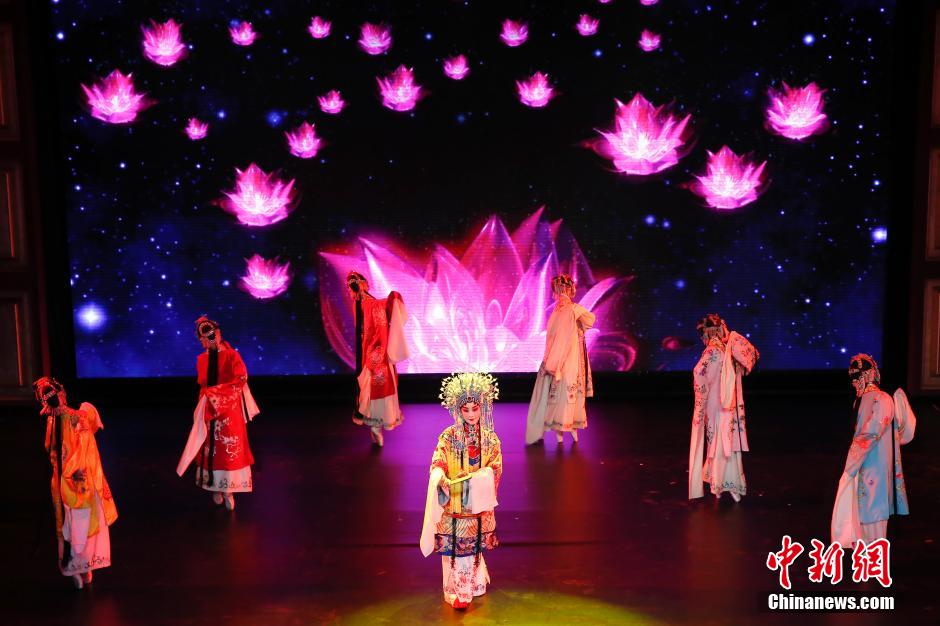 A stylish Peking Opera show is put on the stage in Beijing, Jan. 22, 2015. The innovative combination of Peking Opera and Western Opera brought audiences quite a feast. (Chinanews/Sheng Jiapeng)