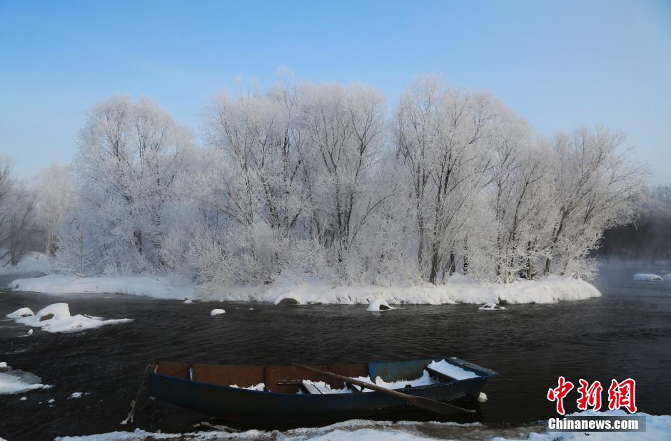 Photo shows the beautiful rime scenery in Xunke county of Heihe, northeast China's Heilongjiang province, Jan. 21, 2015. The dreamlike scenery stretches several kilometers, attracting flocks of tourist and photographers. (CNS/Liu Song)