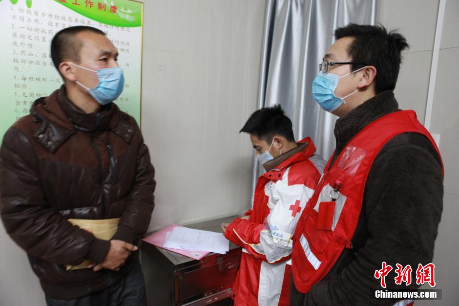 Xiaoyin's father talks with volunteers from Chinese Red Cross Foundation. (CNS/Yang Su)