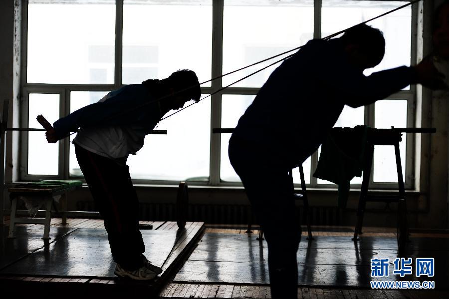 Athletes train inside the gym on Jan. 22, 2015. (Xinhuanet/Wang Kai)