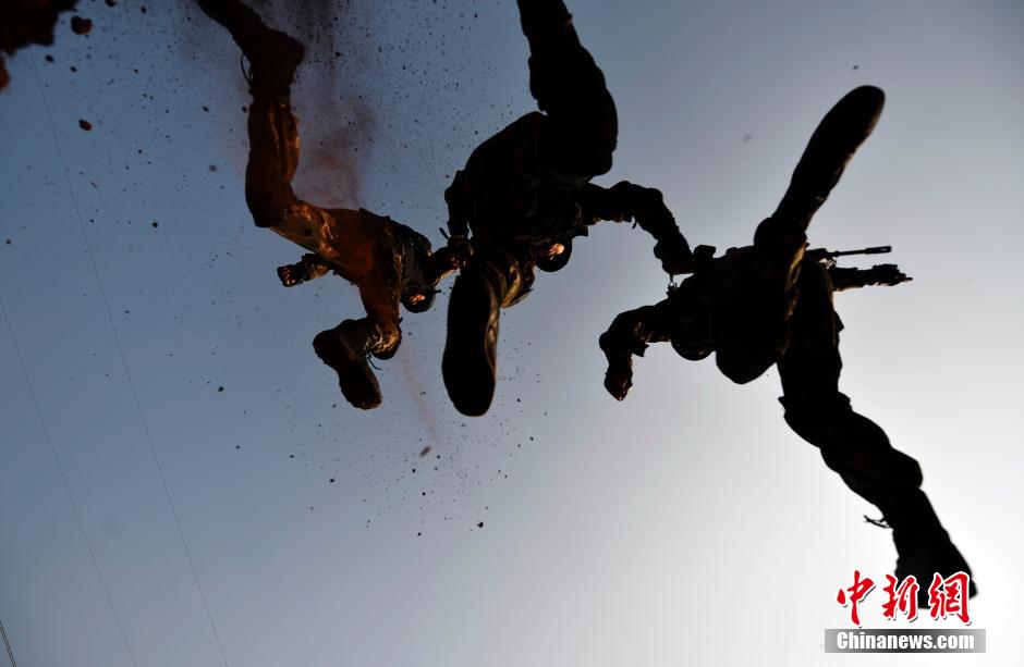 Soldiers from a special detachment of the Armed Police Force in Hunan train on Jan. 21, 2015. (Photo/CNS)