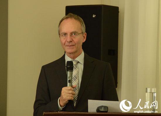 | Henk Kamp, Dutch minister of economic affairs, delivers a speech at the Sino-Dutch aerospace seminar in Beijing, Jan. 27, 2015. (People's Daily Online/Du Mingming) |