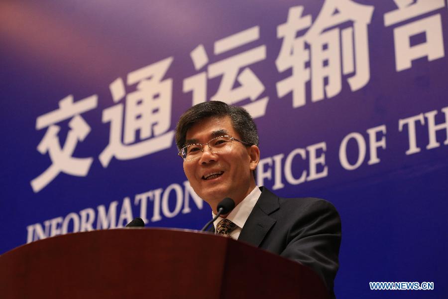 Xu Chengguang, spokesman of the Ministry of Transport(MOT), speaks at a press conference in Beijing, capital of China, Jan. 29, 2015. According to the estimation of MOT, the number of passengers is expected to reach 2,807 millions during the Spring Festival peak travel season this year, increasing by 3.4% over 2014. (Xinhua/Xing Guangli)