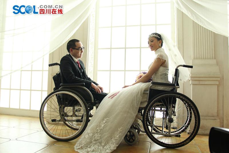 Yang zhou’s legs was amputated after he was saved from the debris in Wenchuan Earthquake in 2008. He encountered Xu Yan, a 26 years old woman who was also an amputee in an online forum. Xu Yan’s husband had left her and she has a six-year-old daughter. They got married on Dec. 25, 2014 after they knew each other for three months. After their story was published on newspaper in January 2015, a wedding photo shop in Chengdu offered to take a set of wedding photos for them free of charge.