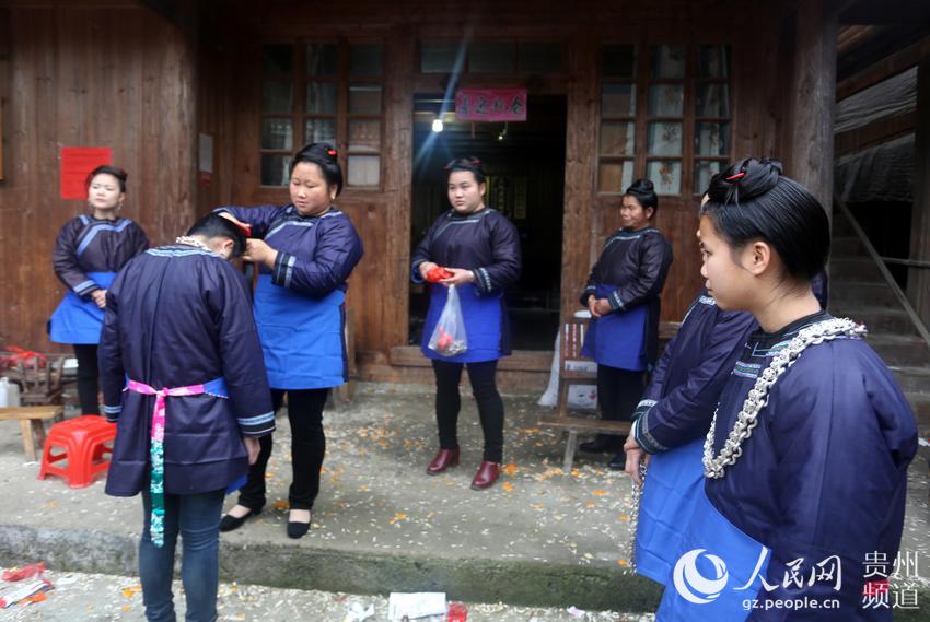 The bride dresses up with the help of her family members. (People’s Daily Online/Yang Licheng)