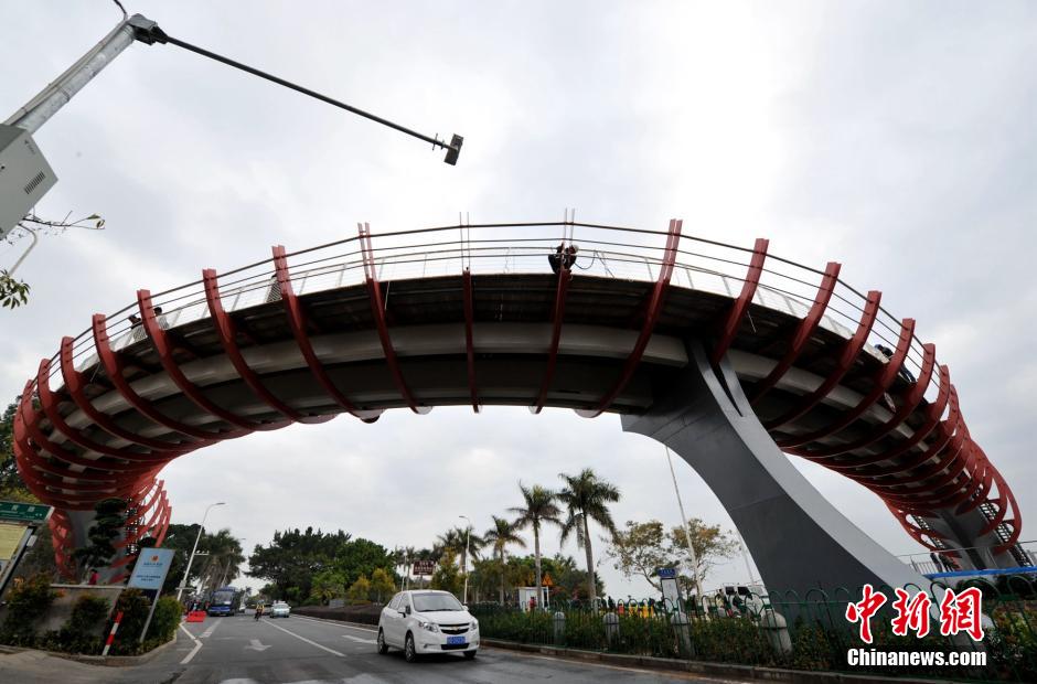 In the shape of fish bones, the most artistic overbridge in Xiamen is put into use on Jan. 28, 2015. Xiamen is famous for its fishing industry. That is the reason why the overbridge was designed in the shape of a fish with only bones. (Chinanews/Zhang Bin)