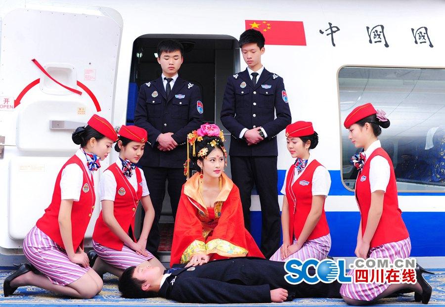 Students in an aviation institute in Chengdu, southwest China's Sichuan province dressed in costumes in Tang Dynasty attend training on Jan. 15, 2015. (Photo/Scol.com.cn)